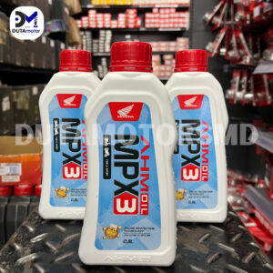 Oli pilihan alternatif yang mempunyai tingkat kekentalan 20W-40 dengan Engine Protection Technology yang akan merawat setiap bagian mesin motor Honda kesayangan Anda. AHM Oil MPX 3 hadir sebagai salah satu alternatif pelumas mesin motor bagi konsumen yang menginginkan oli dengan tingkat kekentalan tinggi atau high viscosity 20W – 40 untuk perawatan produk motor Honda tipe bebek dan sport yang telah diproduksi Honda di Indonesia sejak pertama hadir di negeri ini. Kehadiran AHM Oil MPX 3 menjadi alternatif dari produk pelumas unggulan rekomendasi AHM yang sebelumnya telah menemani konsumen Honda di segmen bebek dan sport, yaitu AHM Oil MPX 1 dan AHM Oil SPX 1 dengan tingkat kekentalan terbaiknya 10W-30.